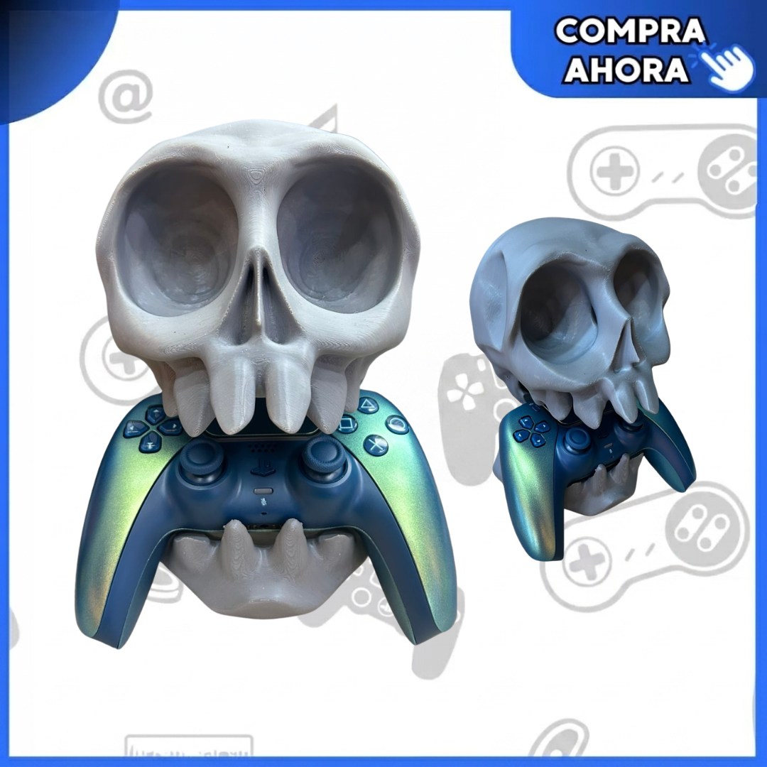 Dale un toque oscuro y brutal a tu setup con este soporte en forma de calavera. Un diseño imponente que no solo destaca visualmente, sino que también ofrece funcionalidad para organizar tu espacio gamer. Este soporte está pensado para sostener tanto tu control como tus diademas, convirtiéndose en un accesorio versátil y práctico. Puedes ubicarlo fácilmente sobre una mesa o instalarlo en la pared (incluye accesorios).