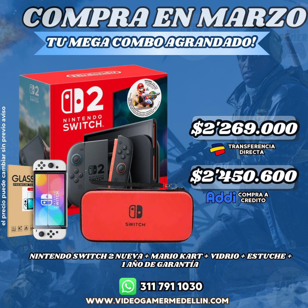 Prepárate para las fiestas con esta increíble Nintendo Switch 2 nueva con Mario Kart que incluyevidrio templado y un estuche de protección para que lleves tu consola a todas partes con total seguridad. Producto nuevo, original y con 1 año de garantía.