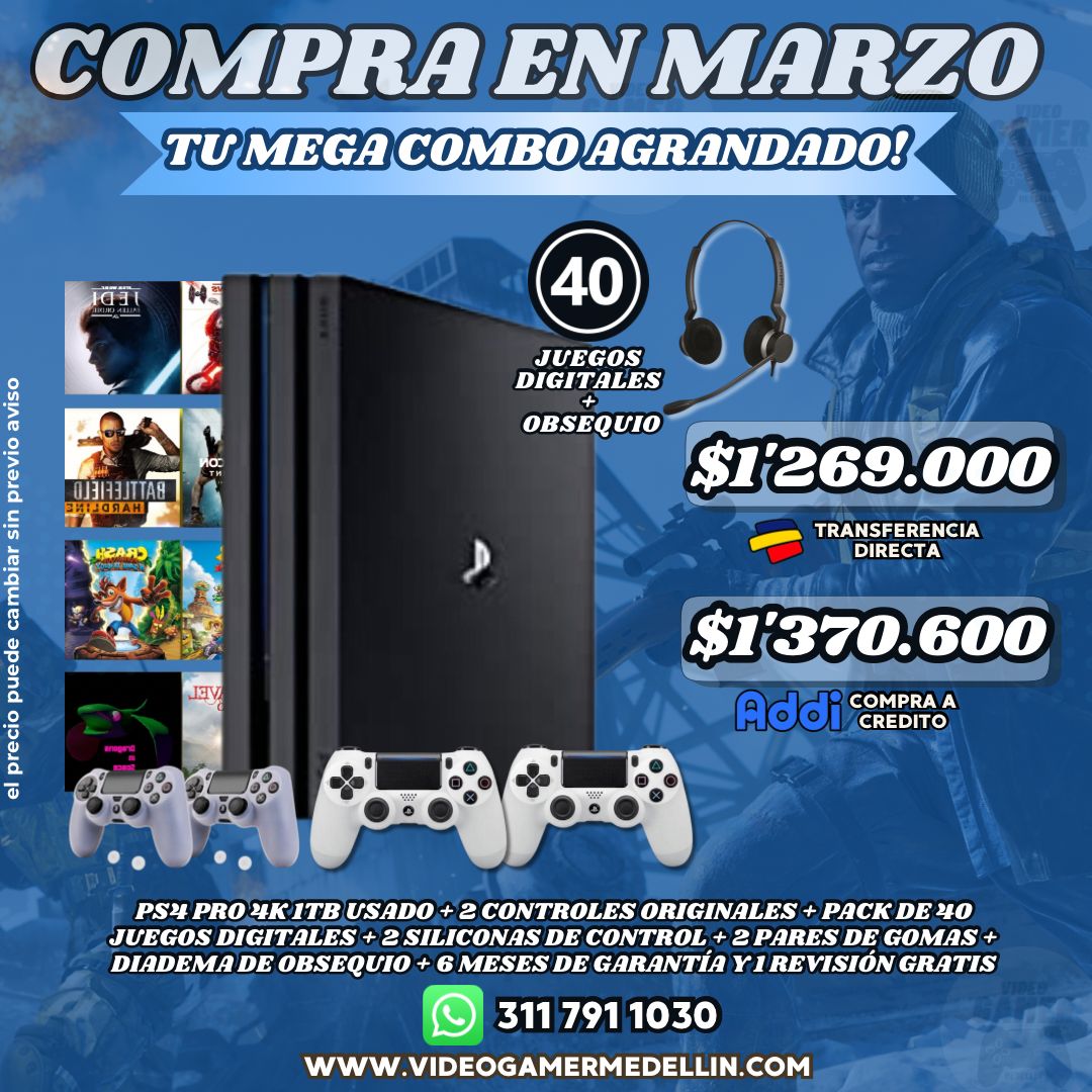Disfruta de un rendimiento confiable con esta PS4 Pro de 1TB en excelente estado, que incluye dos controles originales usados, un pack de más de 40 juegos digitales (predeterminados), dos siliconas para los controles, dos pares de gomas para los análogos y una diadema. La consola ha sido revisada, limpiada y testeada, garantizando un funcionamiento perfecto. Producto en óptimas condiciones y con 6 meses de garantía. ¡Diversión, estilo y potencia en un solo combo gamer!